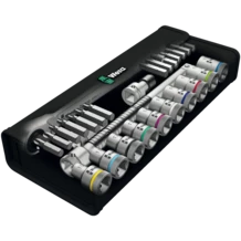 Take it easy værktøjsfinder med farvemærkning efter størrelse – gør det let og hurtigt at finde det rigtige stykke værktøj. Størrelsesguidesystem til værktøj til indvendige sekskantsskruer (vinkelnøgler, Zyklop bit-toppe), udvendige sekskantsskruer og -møtrikker (Joker gaffelnøgler, Zyklop toppe og Zyklop toppe med holdefunktion) og TORX® skruer (vinkelnøgler, Zyklop bit-nøgler).