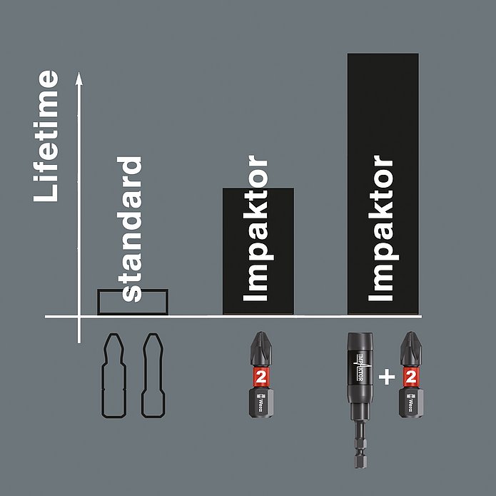 Vi havde det ikke godt med, at bittene fløj mange brugere om ørene, fordi maskinel skruning foregår med stadigt større kræfter. Vi har nøje undersøgt bittenes geometrier og materialeegenskaber for hver enkelt skrueprofil. Vi har analyseret ødelagte bits, holdere og skruer i detaljer. Resultatet er Impaktor-systemet – Vores samlede viden om bitfremstilling forenet i vores bedste bitserie.