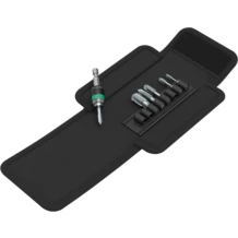 7-teiliger Gewindebohrer-Bit-Satz in robuster Falttasche 9499. Zum Schneiden von metrischen Gewinden. Der Sechskant-Schaft der Bits gewährleistet eine sehr gute Kraftübertragung. Die fein abgestimmte Material-Elastizität sorgt für hohe Standzeiten. Einwandfreie Spanabfuhr und geringe Verkantungsgefahr. Der Rapidaptor gewährleistet blitzschnellen Bitwechsel ohne Hilfswerkzeug. 1/4"-Sechskant, passend für Halter nach DIN ISO 1173-D 6,3.