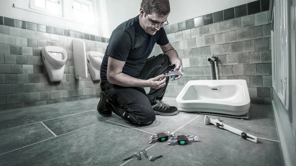 As installation spaces become increasingly confined, it is necessary that tools enable users to work successfully even in such situations. Narrow spaces require additional placement points of the tool. Can spanners be modified to increase the placement possibilities of the tool? The combination of the 7.5° offset open end and the double hexagon geometry doubles the placement points. A repeated 180° turn of the wrench around the longitudinal axis during screwdriving provides four placement possibilities, and bolts or screw heads can be engaged every 15°. The Joker 6003 with its smart open end geometry significantly expands the range of uses in confined spaces. The Joker 6003 will automatically find the respective placement point after every turn. The slim yet robust ring side is tilted by 15° to the tool axis. The high-quality surface treatment achieves a high and long-lasting corrosion protection. With Take it easy tool finder: Colour coding by size. The wear-free material of the clip guarantees easy removal and a secure hold of the spanners.