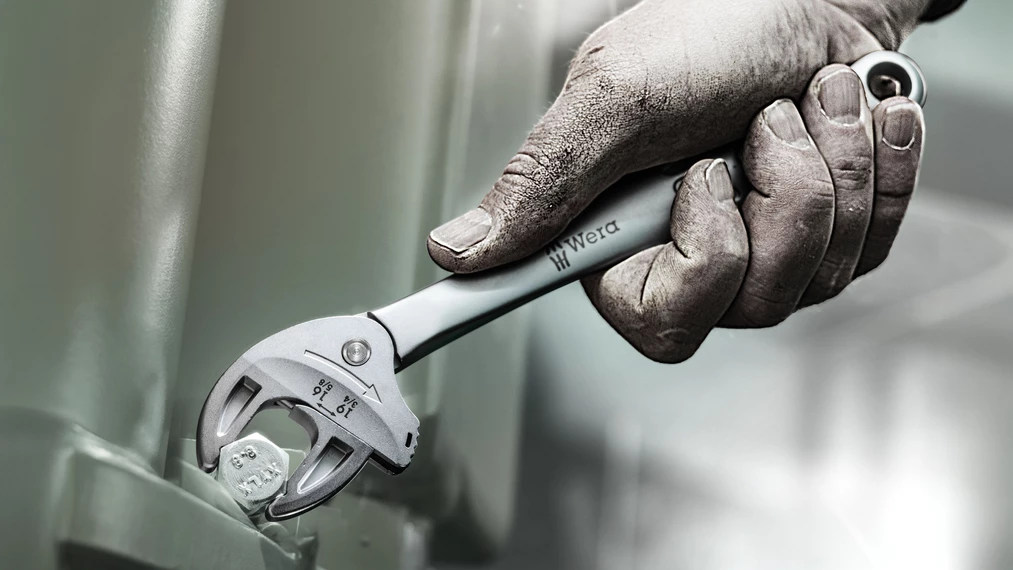 Muchos usuarios desean tener una herramienta para atornillar que abarque un espectro de aplicaciones lo más amplio posible. Quieren un solo útil para varias cotas tanto métricas como en pulgadas. Una herramienta que se adapte automáticamente a los diferentes tamaños de los tornillos. Que atornille de forma segura, que no dañe nada, y que permita una gran velocidad de trabajo. Gracias a las mordazas de agarre contínuo automático que se encuentran en posición paralela, se cubren varios tamaños correspondientes de llaves de boca. Al posicionar la llave en la tuerca o en el tornillo, ella misma encuentra el tamaño que se precisa de forma autónoma. El mecanismo de palanca integrado aprisiona el tornillo hexagonal - o la tuerca hexagonal - entre sus mordazas, lo cual reduce claramente el riesgo de un resbalamiento y de daños. La función de carraca permite un trabajo de atornillar rápido y sin interrupciones ni cambio de agarre. Gracias a la utilización de los ángulos prismáticos se logra realizar un ángulo de retorno de tan sólo 30°. La construcción de un solo brazo en combinación con la función de carraca y el ángulo prismático, facilita el trabajo incluso en espacios de montaje muy estrechos. La Joker 6004 ajustable realmente es el útil de atornillar más universal. Con autoajuste. Con agarre fuerte. Con función de carraca.