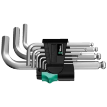 Juego de llaves acodadas de alta calidad con brazos extra-cortos para aplicaciones en tornillos difícilmente accesibles. Para tornillos de hexágono interior. Con el práctico clip de material resistente y libre de desgaste para un alojamiento duraderamente seguro y una fácil extracción de las llaves acodadas. El perfil Hex-Plus ofrece mayores superficies de apoyo en la cabeza del tornillo. De esta forma, el efecto de entalladura se reduce a un mínimo, y la destrucción de la cabeza del tornillo se evita casi por completo. La bola en el brazo largo permite un trabajo seguro incluso en situaciones de montaje complicadas. El cuidadoso tratamiento de cromado en bastidor garantiza una alta protección anticorrosiva del útil. Gracias a las marcas con el tamaño que están grabadas a láser de forma resistente y duradera, la llave acodada correcta se tiene a mano rápidamente.