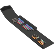 Llave acodada que dispone de una camisa de goma (SPKL) de un material redondeado, agradable al tacto. La camisa permite un manejo ergonómico y agradable, incluso bajo temperaturas bajas, y así cuida de los dedos del usuario. Todas las llaves vienen con marcas a color y sellos según el tamaño, y así se encuentran rápidamente. El estuche está hecho de un material resistente al desgaste y ofrece una sujeción segura de las llaves acodadas, y al mismo tiempo facilita su extracción. Para tornillos de hexágono interior.