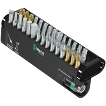 29 puntas en un espacio mínimo. Es muy simple extraer y volver a depositar las puntas en la caja. El porta-puntas Rapidaptor garantiza un cambio de puntas ultrarrápido. Con contenido universal para todas las áreas de aplicación. Bit-Check robusto.