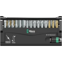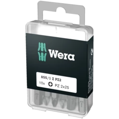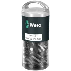 Las puntas duras y resistentes de Wera evitan la rotura prematura del extremo de la salida. Las puntas Z, normalmente son las puntas adecuadas para el caso universal de uniones atornilladas.