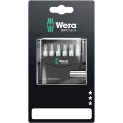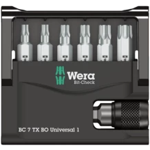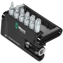 Vankka Bit-Check Weralta. Bit-Check-settien avulla näet heti käytettävissä olevat työkalut. Tarpeettomat Bits-kärjet on helppo asettaa takaisin paikoilleen eivätkä ne joudu hukkaan. Helppo kuljettaa esimerkiksi paidan taskussa. Mukana kärkipidin, joka sopii sellaisten bits-kärkien kiinnittämiseen, joissa on 1/4" kuusiokantakiinnitys standardin DIN ISO 1173-C 6,3 mukaan. Pikaistukka nopeaan bits-kärkien vaihtoon. Sisältää sitkeäksi karkaistuja TORX® BO bits-kärkiä turvaruuviliitäntöihin, yleiskäyttöön.