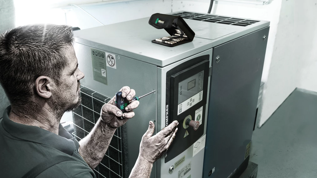 The integrated ratchet with fine toothing (80 teeth/return angle 4.5°) eases and accelerates screwdriving without having to reposition the tool. The ratchet mechanism completely embedded in the handle ensures very handy and comfortable work. With reversing lever for comfortable clockwise/counterclockwise direction change in one-hand operation. The ergonomic shape of the handle fills the ball of the hand well, the fingers lie securely in the softly rounded recessed grips. The whole hand comes into contact with the handle, friction loss between hand and handle is avoided. Bit holder for bits with 1/4" external hexagon drive as per DIN ISO 1173-C 6.3 and E 6.3. With Rapidaptor technology for lightning-fast bit changes.