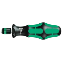 Premium bitholding screwdriver. The Rapidaptor quick-release chuck allows for lightning-fast bit changes without any extra tools. The strong permanent magnet holds the bits firmly. Kraftform Plus handle for comfortable ergonomic screwdriving, which avoids blisters and calluses. Hard handle zones for high working speeds, while soft handle zones guarantee a high torque transfer. Suitable for bits with 1/4" external hexagon drive as per DIN ISO 1173-C 6.3 and E 6.3 (ISO 1173).