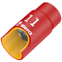 The Zyklop sockets and extensions for electricians offer increased safety thanks to their 2-component insulation with a yellow insulation core under an outer red insulation layer.