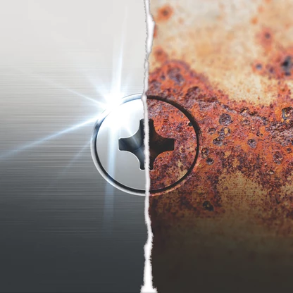 L’acciaio inox non arrugginisce. Ma se per elementi o viti in acciaio inox vengono usati utensili non in acciaio inox, si possono staccare delle particelle che aderiscono sulla superficie e arrugginiscono. Questa cosiddetta ruggine impropria non pregiudica soltanto l’estetica ma può causare anche danni strutturali che richiedono lavori di riparazione a costi non indifferenti. Usando utensili in acciaio inox, si evita l’abrasione di particelle che causano la formazione di ruggine impropria.