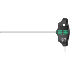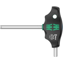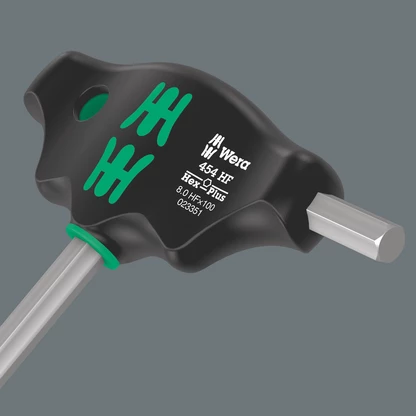 Giravite con impugnatura a T: la soluzione ideale per trasmettere coppie di serraggio e allentamento particolarmente elevate. La forma ergonomica dell'impugnatura riempie il palmo della mano, le dita aderiscono saldamente agli incavi arrotondati. L'intera mano è a contatto con l'impugnatura, evitando perdite di attrito. Con funzione di ritegno per una tenuta sicura della vite esagonale sull'inserto. Speciale rivestimento delle superfici per una elevata protezione dalla corrosione e un accoppiamento ottimale nella vite.