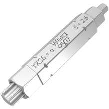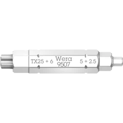 Con l'inserto 4-in-1 9507 possono essere azionate viti esagonali di tre misure diverse (2,5; 5,0; 6,0) e una misura TORX® TX 25. Per utilizzare il profilo più grande, si deve premere durante l'avvitamento continuamente contro la forza della molla, cosi che il profilo più piccolo sia svasato e possa inserirsi il profilo più grande.
