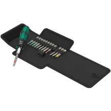 14 pezzi - Assortimento giravite a cricchetto. Impugnatura portainserti con funzione intuitiva del cricchetto. La "rotazione con le dita" accelera il lavoro. Il meccanismo a cricchetto, interamente integrato nell'impugnatura, consente un lavoro maneggevole e poco affaticante. Commutazione ergonomica dalla posizione destra/sinistra o / 0. Impugnatura Kraftform Plus per lavorare in ergonomia, senza calli e vesciche. Portainserti magnetico per inserti da 1/4" esagonali. 13 inserti duri tenaci per l'impiego universale (croce Phillips e Pozidriv, TORX®, esagono cavo e taglio) lungh. 50 mm; nichelati, con il trova-utensili Take it easy: identificazione cromatica a seconda del profilo e indicazione della misura per trovare facilmente l'inserto desiderato.