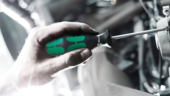 L’impugnatura Wera Kraftform – ergonomica come la mano umana. Massima trasmissione di forza, alta velocità e presa sicura grazie alla protezione antirotolamento. Sviluppata con Fraunhofer – collaudata dal 1968.
