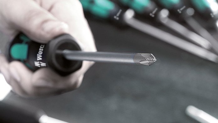 La lama Lasertip della Wera riduce la pressione necessaria e accresce la forza trasmessa. I lavori d’avvitamento diventano più confortevoli e sicuri.