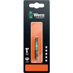 Hoogwaardige bits voor binnen TORX® schroeven. De Impaktor technologie zorgt voor een bovengemiddelde gebruiksduur ook onder extreme situaties. Verhoogde wrijvingsweerstand dankzij ruwe diamantdeeltjes op de bitpunt voorkomt het wegglijden uit de schroef. Uitermate geschikt voor gebruik in combinatie met conventionele impact- en slagschroevendraaiers. 1/4" zeskant, passend in houders conform DIN ISO 1173-D 6,3.