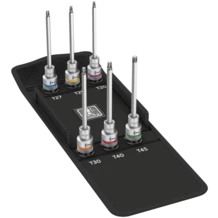 Bit-dop-set TORX®, met vasthoudfunctie voor uiterst comfortabel schroeven met minder risico om de schroef te verliezen bij het plaatsen daarvan op het werkstuk.