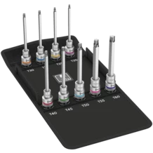 Bit-dop-set TORX®, met vasthoudfunctie voor uiterst comfortabel schroeven met minder risico om de schroef te verliezen bij het plaatsen daarvan op het werkstuk.