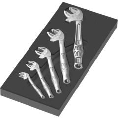 Combinatie van gereedschappen: 1/4" Zyklop mini-ratels, doppen, een bithandhouder en bits in een ruimtebesparende Tool-Check PLUS koker van robuuste kunststof.