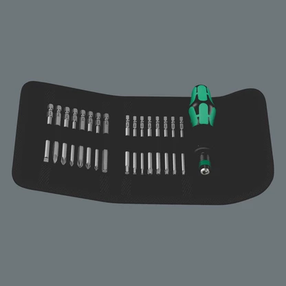 - Kraftform Kompakt 60: Vouwetui met 89 mm lange bits en 816 R bithandhouder met Rapidaptor snelwisselfunctie en meercomponenten Kraftform handgreep voor vermoeiingsvrij werken