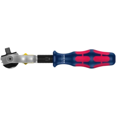 Svinghjulet dreier fritt og kan låses i hvilken som helst posisjon, og gjør det fleksibelt å arbeide i trange og vanskelige rom. Den forhåndsdefinerte låsingen på 0°, 15° og 90° til venstre og høyre sikrer sikkert arbeid uten å skli av skrallehodet.