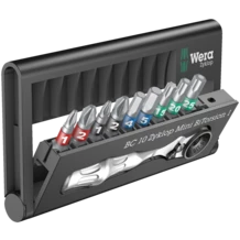 Niewielkich rozmiarów kaseta mieszcząca wiele narzędzi. Groty posegregowane według profili i wielkości. Grzechotka Wera. Wykonana ze stali kutej matrycowo. Drobna podziałka z 60 zębami i małym kątem pracy wynoszącym 6° do prac precyzyjnych. Łatwe przełączanie kierunku prawo-lewo. Ergonomiczna konstrukcja główki i przełącznika.