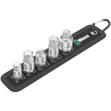 - Set with 5 connection parts (adapters) for square head socket wrench inserts