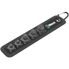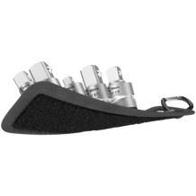 Robust textile belt with 5 connection parts: 781 A: 1/4" square head socket drive, for 3/8" and 1/2" square head socket wrench inserts with ball lock; 781 B: 3/8" square head socket drive, for 1/4" and 1/2" square head socket wrench inserts with ball lock; 781 C: 1/2" square head socket drive, for 3/8" square head socket wrench inserts with ball lock.