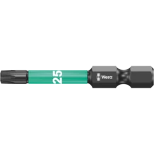 High quality bits for recessed TORX® screws. The Impaktor technology offers an above-average service life even under extreme circumstances. Enhanced friction resistance, thanks to the rough diamond-particle coating on the bit tip, prevents any slipping out of the screw head. Particularly suitable for use with customary impact drivers. ¼" hexagon, suitable for holders as per DIN ISO 1173-F 6.3.