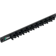 Empty magnetic rail. For up to 9 Kraftform screwdrivers. The clips ensure perfect hold und easy access to the tools. With its strong magnet, the rail holds securely to metal surfaces. The rail can also be bolted to the wall.
