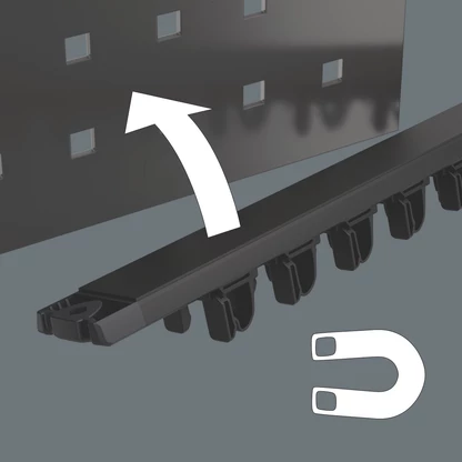 With its strong magnet, the rail can be attached securely to metal surfaces.