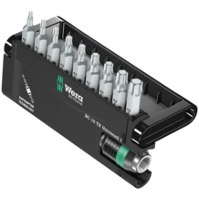 Набор в прочном футляре Bit-Check фирмы Wera. Наборы Bit-Check обеспечивают полный обзор всех размещённых инструментов. Лишние в работе биты просто возвращаются на свое место в футляре, чтобы не потерялись. Простая переноска, например, в кармане рубашки. Набор включает универсальный держатель с быстрозажимным патроном: технология Rapidaptor позволяет ставить биты даже без использования гильзы. Извлечение битов осуществляется простым сдвиганием гильзы вперед - моментальная смена битов даже одной рукой. Для битов с шестигранным хвостовиком 1/4" по стандарту DIN ISO 1173-C 6,3. Для установки в шуруповерт или патрон электродрели. Набор включает закалённые до вязкой твёрдости биты TORX®, для универсального применения.