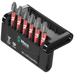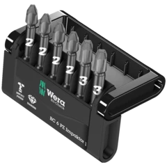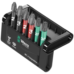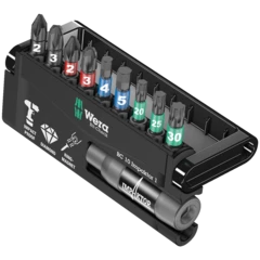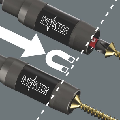 1 держатель Impaktor со стопорным кольцом и круглым магнитом, 29 битов Impaktor. Благодаря наилучшему использованию свойств материала и оптимальному подбору геометрических параметров технология Impaktor обеспечивает изделиям срок службы, превышающий средние показатели даже с учетом жестких условий их применения; особенно подходит для работы с предлагаемыми на рынке ударными винтовертами; держатель С круглым магнитом для простой фиксации длинных и тяжелых винтов, идеально для работы в положении над головой. Шероховатое алмазное покрытие за счёт сопротивления трением снижает выскальзывание наконечника из винта.