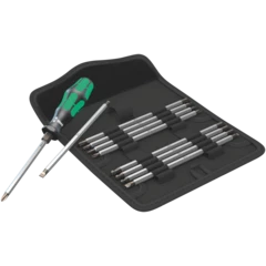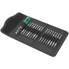 Складная сумка для крепления на поясе с битами длиной 89 мм. Набор включает ручку-держатель 816 R Kraftform с быстрозажимным патроном "Rapidaptor" и многокомпонентной ручкой Kraftform для малоутомительной работы. Подходит для завинчиваний в ручном и машинном режимах. 33 предмета.
