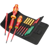 Насадка VDE для системы Kraftform Kompakt "Одна ручка - много насадок" Моментальная смена насадок без специального инструмента Индивидуально протестировано при напряжении 10 000 В для обеспечения безопасной работы при разрешенном напряжении 1000 В. Зауженный рабочий конец со встроенной защитной изоляцией, позволяет получить доступ к низко расположенным винтовым и пружинным элементам и работать с ними. Наконечник Wera Black Point обеспечивает точность установки и оптимизированную защиту от коррозии. Идентификатор инструмента Take it easy: цветовая маркировка по профилю и индикация размера с лазерной гравировкой. Шестигранные края стержня затрудняют надоедливое скатывание инструмента на рабочем месте.