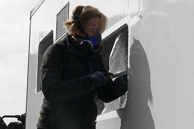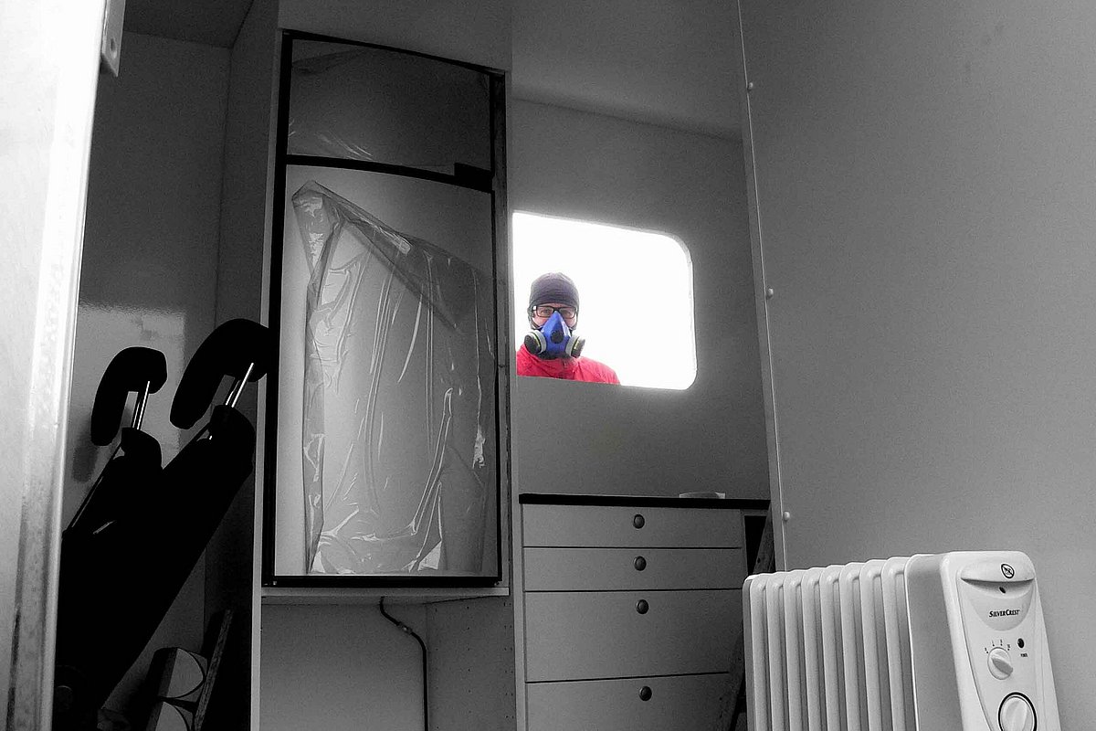 На самом деле, до сих пор всё шло довольно гладко. Но были и моменты, когда проблемы настигали нас по-настоящему жестоко. Самый худший опыт на данный момент — обнаружение осмотических повреждений на внутренних стенах из GFK в нескольких местах. Это явление, более известное в судостроении, потребовало семи дней шлифовки, плюс неделю шпаклевки, грунтовки и покраски. Ещё одним неприятным сюрпризом стало пробуждение утром после профессиональной укладки дизайнерского пола и обнаружение, что весь пол полностью отклеился.