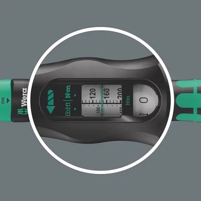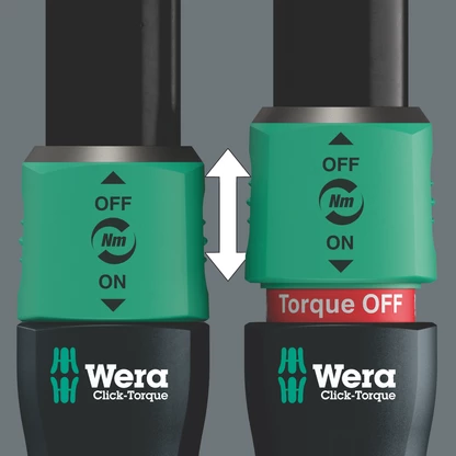 När det inställda momentvärdet har uppnåtts utlöses en hör- och kännbar mekanism.